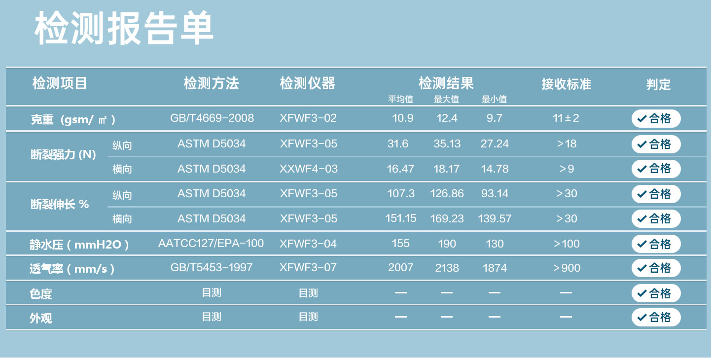 主要成分:聚丙烯 克重:11g 顏色:藍色 產(chǎn)品用途:該款布料為紡粘聚丙烯無紡布,可提供優(yōu)異的液體和防塵保護,可用于圓帽生產(chǎn),面料柔軟,穿著舒適,透氣性好